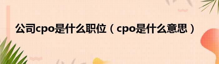 大家好,今天小六子来为大家解答以下的问题,关于公司cpo是什么职位,cpo是什么意思这个很多人还不知道,现在让我们一起来看看吧!