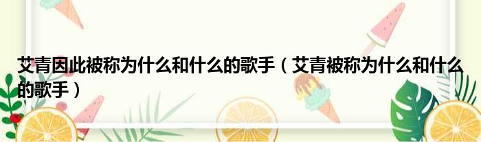 大家好,今天小六子来为大家解答以下的问题,关于艾青因此被称为什么和什么的歌手,艾青被称为什么和什么的歌手这个很多人还不知道,现在让我们一起来看看吧!