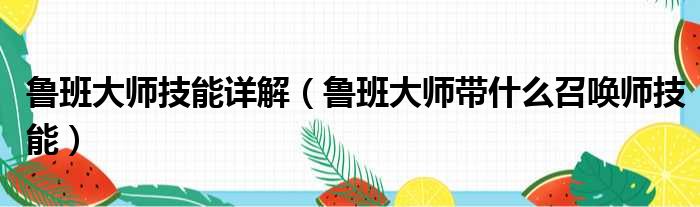 大家好,今天小六子来为大家解答以下的问题,关于鲁班大师技能详解,鲁班大师带什么召唤师技能这个很多人还不知道,现在让我们一起来看看吧!