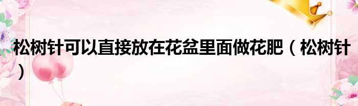 大家好,今天小六子来为大家解答以下的问题,关于松树针可以直接放在花盆里面做花肥,松树针这个很多人还不知道,现在让我们一起来看看吧!