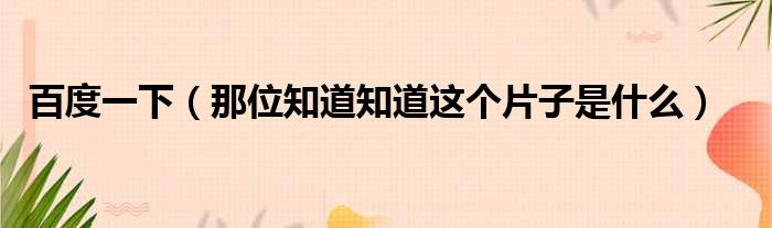 大家好,今天小六子来为大家解答以下的问题,关于百度一下,那位知道知道这个片子是什么这个很多人还不知道,现在让我们一起来看看吧!