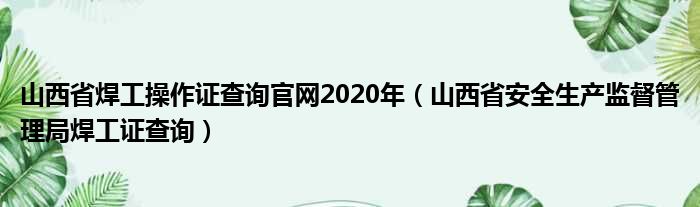 大家好,今天小六子来为大家解答以下的问题,关于山西省焊工操作证查询官网2020年,山西省安全生产监督管理局焊工证查询这个很多人还不知道,现在让我们一起来看看吧!