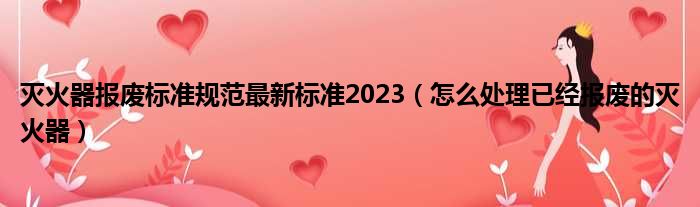 大家好,今天小六子来为大家解答以下的问题,关于灭火器报废标准规范最新标准2023,怎么处理已经报废的灭火器这个很多人还不知道,现在让我们一起来看看吧!