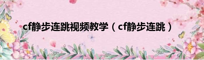 大家好,今天小六子来为大家解答以下的问题,关于cf静步连跳视频教学,cf静步连跳这个很多人还不知道,现在让我们一起来看看吧!