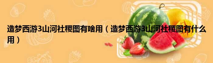 大家好,今天小六子来为大家解答以下的问题,关于造梦西游3山河社稷图有啥用,造梦西游3山河社稷图有什么用这个很多人还不知道,现在让我们一起来看看吧!