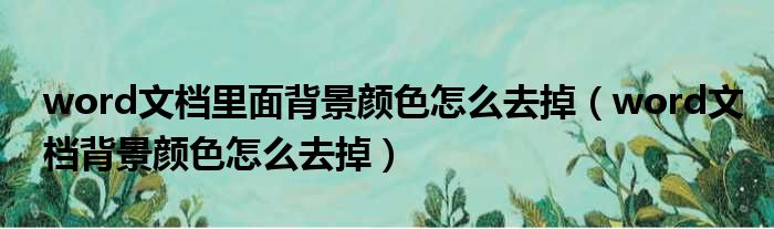 大家好,今天小六子来为大家解答以下的问题,关于word文档里面背景颜色怎么去掉,word文档背景颜色怎么去掉这个很多人还不知道,现在让我们一起来看看吧!