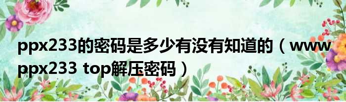 大家好,今天小六子来为大家解答以下的问题,关于ppx233的密码是多少有没有知道的,www ppx233 top解压密码这个很多人还不知道,现在让我们一起来看看吧!