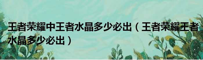 大家好,今天小六子来为大家解答以下的问题,关于王者荣耀中王者水晶多少必出,王者荣耀王者水晶多少必出这个很多人还不知道,现在让我们一起来看看吧!