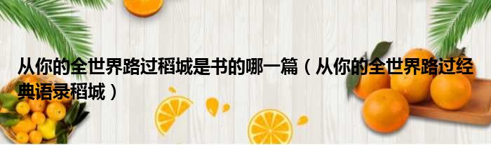 大家好,今天小六子来为大家解答以下的问题,关于从你的全世界路过稻城是书的哪一篇,从你的全世界路过经典语录稻城这个很多人还不知道,现在让我们一起来看看吧!
