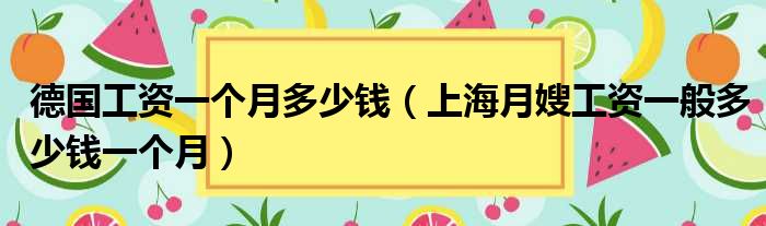 大家好,今天小六子来为大家解答以下的问题,关于德国工资一个月多少钱,上海月嫂工资一般多少钱一个月这个很多人还不知道,现在让我们一起来看看吧!