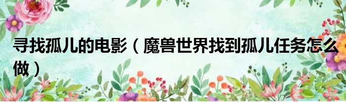 大家好,今天小六子来为大家解答以下的问题,关于寻找孤儿的电影,魔兽世界找到孤儿任务怎么做这个很多人还不知道,现在让我们一起来看看吧!