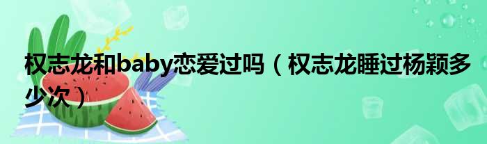大家好,今天小六子来为大家解答以下的问题,关于权志龙和baby恋爱过吗,权志龙睡过杨颖多少次这个很多人还不知道,现在让我们一起来看看吧!