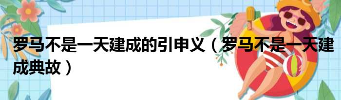 大家好,今天小六子来为大家解答以下的问题,关于罗马不是一天建成的引申义,罗马不是一天建成典故这个很多人还不知道,现在让我们一起来看看吧!