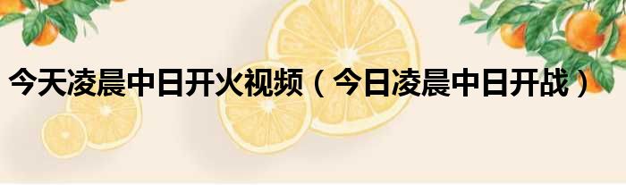 大家好,今天小六子来为大家解答以下的问题,关于今天凌晨中日开火视频,今日凌晨中日开战这个很多人还不知道,现在让我们一起来看看吧!