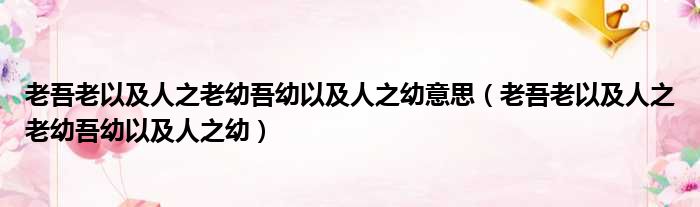 2、”老吾老以及人之老:第一个‘老’字是动词‘赡养’、‘孝敬’的意思,第二及第三个‘老’字是名词‘老人’、‘长辈’的意思;幼吾幼以及人之幼:第一个‘幼’字是动词‘抚养’、‘教育’的意思,第二及第三个‘幼’字是名词‘子女’、‘小辈’的意思;两句中的‘及’都有‘推己及人’的意思。