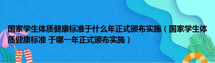 大家好,今天小六子来为大家解答以下的问题,关于国家学生体质健康标准于什么年正式颁布实施,国家学生体质健康标准 于哪一年正式颁布实施这个很多人还不知道,现在让我们一起来看看吧!