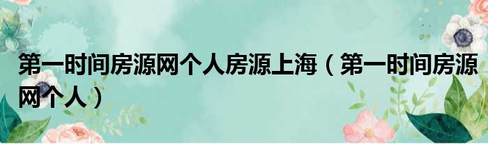 大家好,今天小六子来为大家解答以下的问题,关于第一时间房源网个人房源上海,第一时间房源网个人这个很多人还不知道,现在让我们一起来看看吧!