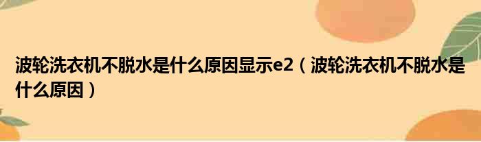 大家好,今天小六子来为大家解答以下的问题,关于波轮洗衣机不脱水是什么原因显示e2,波轮洗衣机不脱水是什么原因这个很多人还不知道,现在让我们一起来看看吧!