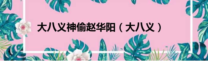 大家好,今天小六子来为大家解答以下的问题,关于大八义神偷赵华阳,大八义这个很多人还不知道,现在让我们一起来看看吧!