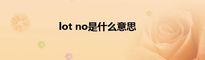 大家好,今天小六子来为大家解答以下的问题,关于lot no是什么意思这个很多人还不知道,现在让我们一起来看看吧!