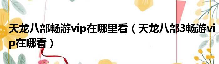 大家好,今天小六子来为大家解答以下的问题,关于天龙八部畅游vip在哪里看,天龙八部3畅游vip在哪看这个很多人还不知道,现在让我们一起来看看吧!