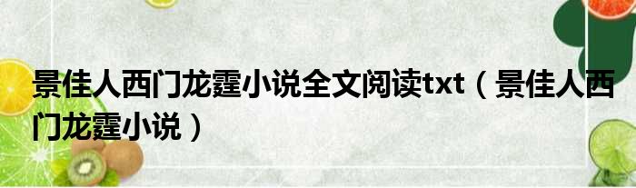 大家好,今天小六子来为大家解答以下的问题,关于景佳人西门龙霆小说全文阅读txt,景佳人西门龙霆小说这个很多人还不知道,现在让我们一起来看看吧!