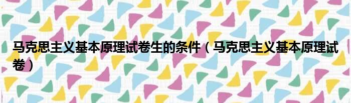 大家好,今天小六子来为大家解答以下的问题,关于马克思主义基本原理试卷生的条件,马克思主义基本原理试卷这个很多人还不知道,现在让我们一起来看看吧!