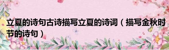 大家好,今天小六子来为大家解答以下的问题,关于立夏的诗句古诗描写立夏的诗词,描写金秋时节的诗句这个很多人还不知道,现在让我们一起来看看吧!