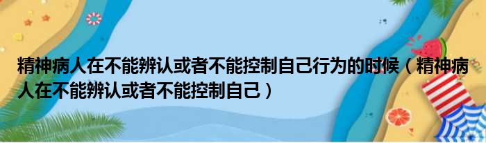 大家好,今天小六子来为大家解答以下的问题,关于精神病人在不能辨认或者不能控制自己行为的时候,精神病人在不能辨认或者不能控制自己这个很多人还不知道,现在让我们一起来看看吧!