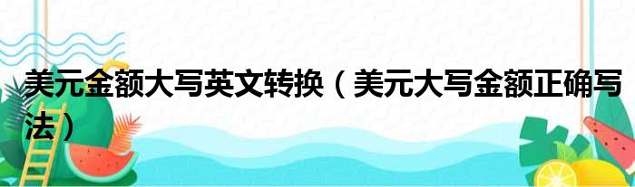 大家好,今天小六子来为大家解答以下的问题,关于美元金额大写英文转换,美元大写金额正确写法这个很多人还不知道,现在让我们一起来看看吧!