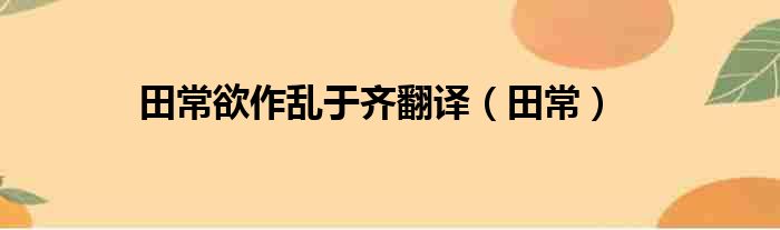 大家好,今天小六子来为大家解答以下的问题,关于田常欲作乱于齐翻译,田常这个很多人还不知道,现在让我们一起来看看吧!