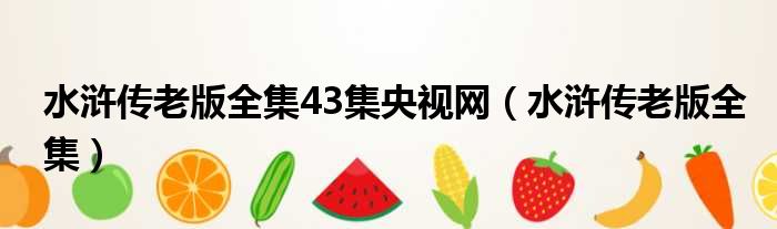 大家好,今天小六子来为大家解答以下的问题,关于水浒传老版全集43集央视网,水浒传老版全集这个很多人还不知道,现在让我们一起来看看吧!