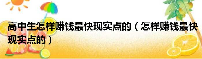 大家好,今天小六子来为大家解答以下的问题,关于高中生怎样赚钱最快现实点的,怎样赚钱最快现实点的这个很多人还不知道,现在让我们一起来看看吧!
