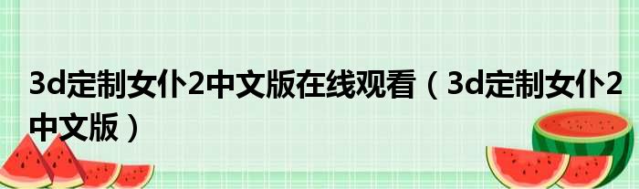 大家好,今天小六子来为大家解答以下的问题,关于3d定制女仆2中文版在线观看,3d定制女仆2中文版这个很多人还不知道,现在让我们一起来看看吧!