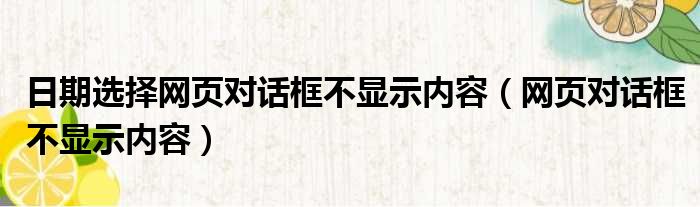 大家好,今天小六子来为大家解答以下的问题,关于日期选择网页对话框不显示内容,网页对话框不显示内容这个很多人还不知道,现在让我们一起来看看吧!