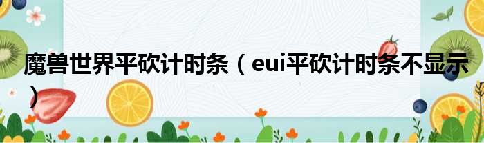 大家好,今天小六子来为大家解答以下的问题,关于魔兽世界平砍计时条,eui平砍计时条不显示这个很多人还不知道,现在让我们一起来看看吧!