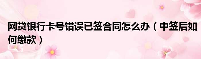 大家好,今天小六子来为大家解答以下的问题,关于网贷银行卡号错误已签合同怎么办,中签后如何缴款这个很多人还不知道,现在让我们一起来看看吧!
