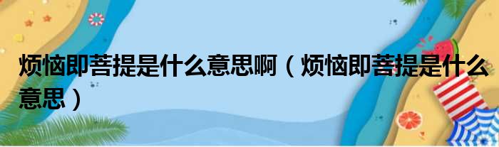 1、一、佛学大词典 对“烦恼即菩提”解释如下:【烦恼即菩提】 烦恼与菩提相即不二之意。