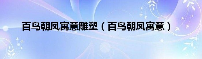 大家好,今天小六子来为大家解答以下的问题,关于百鸟朝凤寓意雕塑,百鸟朝凤寓意这个很多人还不知道,现在让我们一起来看看吧!