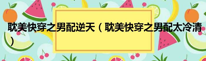 大家好,今天小六子来为大家解答以下的问题,关于耽美快穿之男配逆天,耽美快穿之男配太冷清这个很多人还不知道,现在让我们一起来看看吧!