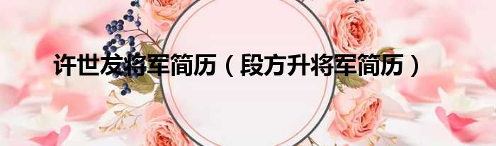 大家好,今天小六子来为大家解答以下的问题,关于许世犮将军简历,段方升将军简历这个很多人还不知道,现在让我们一起来看看吧!