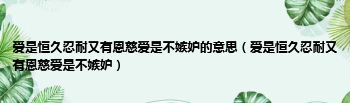 大家好,今天小六子来为大家解答以下的问题,关于爱是恒久忍耐又有恩慈爱是不嫉妒的意思,爱是恒久忍耐又有恩慈爱是不嫉妒这个很多人还不知道,现在让我们一起来看看吧!