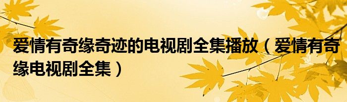 大家好,今天小六子来为大家解答以下的问题,关于爱情有奇缘奇迹的电视剧全集播放,爱情有奇缘电视剧全集这个很多人还不知道,现在让我们一起来看看吧!