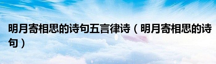 大家好,今天小六子来为大家解答以下的问题,关于明月寄相思的诗句五言律诗,明月寄相思的诗句这个很多人还不知道,现在让我们一起来看看吧!