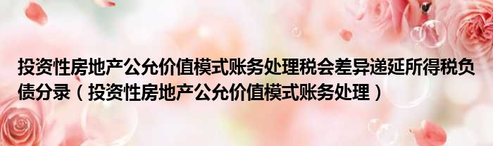 大家好,今天小六子来为大家解答以下的问题,关于投资性房地产公允价值模式账务处理税会差异递延所得税负债分录,投资性房地产公允价值模式账务处理这个很多人还不知道,现在让我们一起来看看吧!