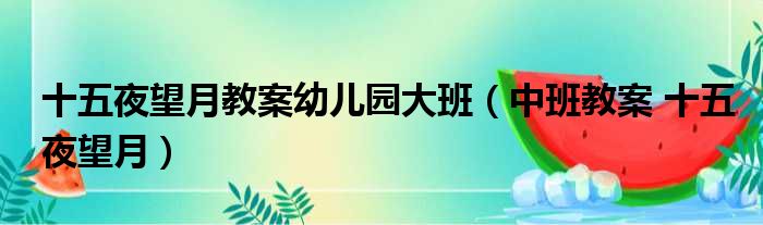 大家好,今天小六子来为大家解答以下的问题,关于十五夜望月教案幼儿园大班,中班教案 十五夜望月这个很多人还不知道,现在让我们一起来看看吧!