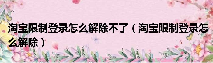 2、淘宝限制登陆是指限制淘宝会员登陆淘宝网,千牛客户端,旺旺客户端,手机淘宝客户端,支付宝以及阿里巴巴网站等。
