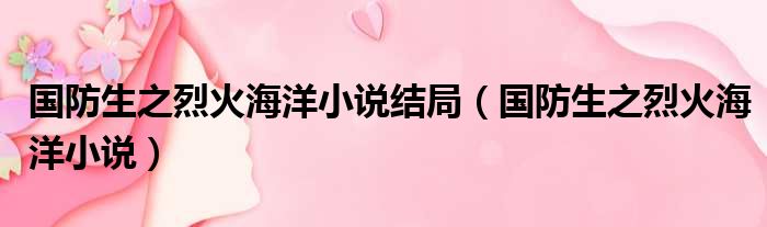 大家好,今天小六子来为大家解答以下的问题,关于国防生之烈火海洋小说结局,国防生之烈火海洋小说这个很多人还不知道,现在让我们一起来看看吧!