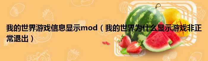 大家好,今天小六子来为大家解答以下的问题,关于我的世界游戏信息显示mod,我的世界为什么显示游戏非正常退出这个很多人还不知道,现在让我们一起来看看吧!