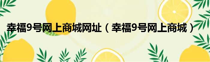 大家好,今天小六子来为大家解答以下的问题,关于幸福9号网上商城网址,幸福9号网上商城这个很多人还不知道,现在让我们一起来看看吧!